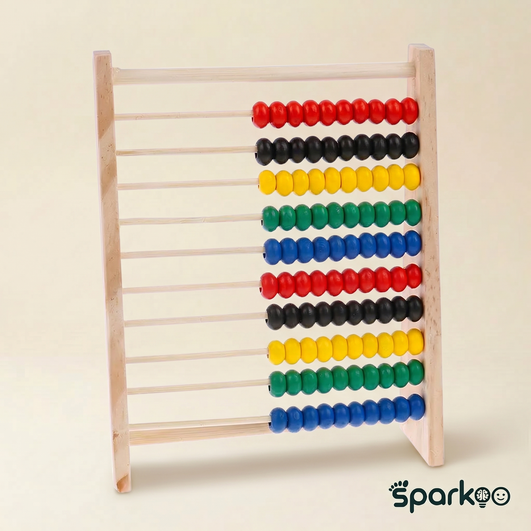 Sparkoo Wooden Abacus শিশুর গণিতের ভিত্তি গড়ে তোলার জন্য একটি কালজয়ী Counting Tool। ১০টি Row-তে মোট ১০০টি রঙিন Wooden Bead রয়েছে, যা দিয়ে শিশু Counting, Addition ও Subtraction হাতে-কলমে শিখতে পারে। প্রতিটি Row আলাদা রঙের Bead দিয়ে সাজানো, যা শিশুর Color Recognition ও Number Sense একসাথে বিকাশ করে। Sturdy Wooden Frame টি টেকসই ও দীর্ঘস্থায়ী, এবং Non-Toxic Paint ব্যবহারে শিশুর জন্য সম্পূর্ণ নিরাপদ। ঘরে বা স্কুলে শেখার জন্য ৩ বছর বা তার বেশি বয়সী শিশুদের আদর্শ Math Learning Tool।